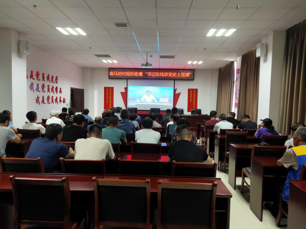 按照组织部《关于组织收看“书记在线讲党史上党课”的通知》要求,2020年7月15日下午3点齐都镇南马坊村党支部组织全体党员在办公楼党员会议室在线收看了由淄川区委书记李新胜在线讲党史上党课。